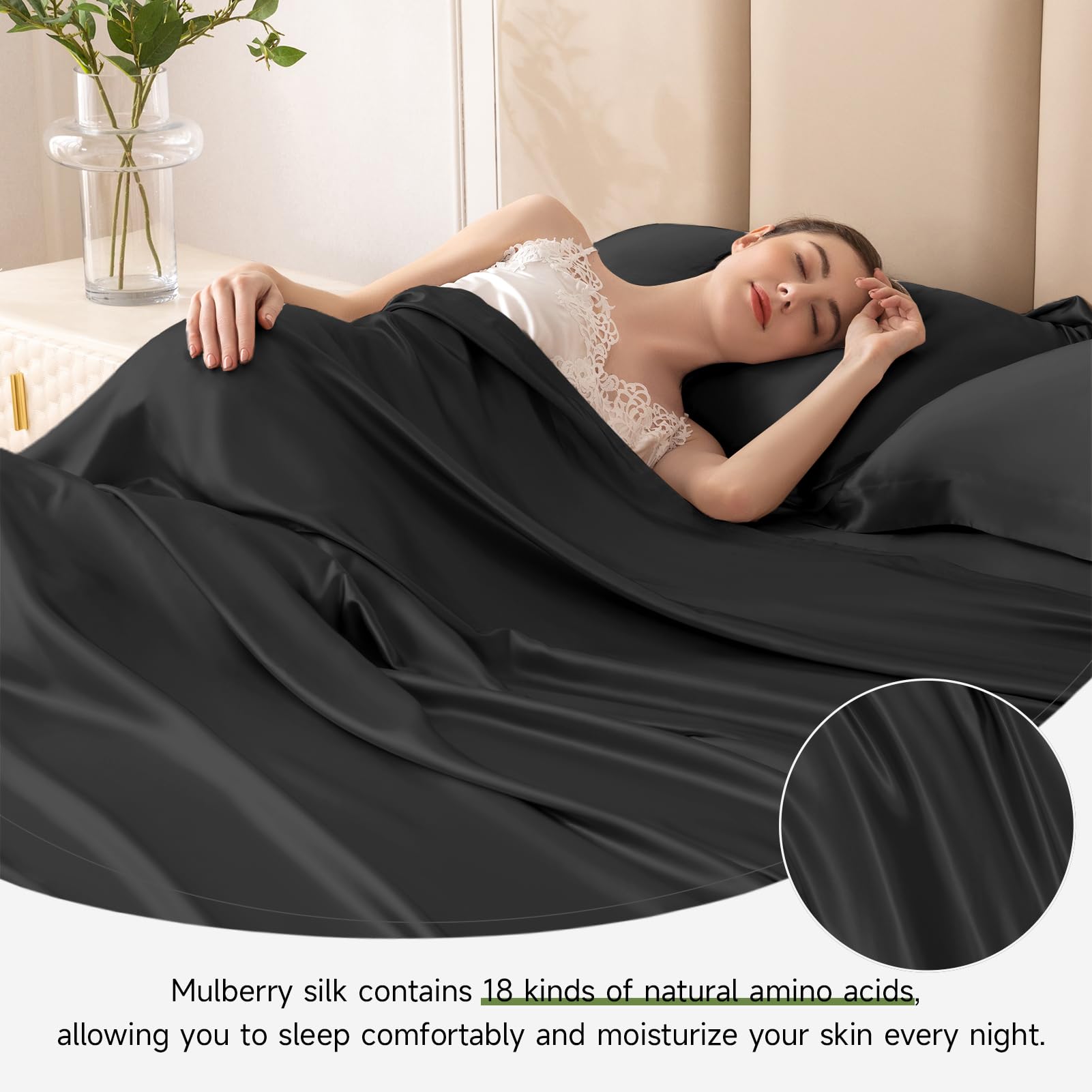 - 【Perfect for Hot and Cold Sleepers】Silk's natural temperature regulating properties keep you comfortable in every season. It can effectively reduce hot or cold irregularities when sleeping by wicking moisture from the body and adjusting to body temperature. Super soft, comfy and smooth yet breathable, best for skin care; helps to retain moisture on your skin.